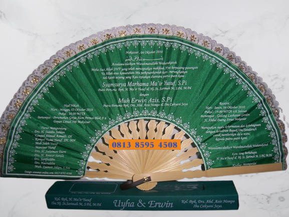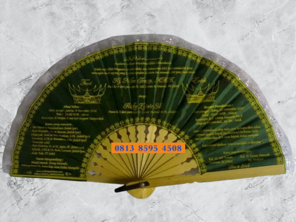 Ini salah satu produk kami undangan model kipas warna kain dan sablon bisa disesuaikan permintaan pemesanan