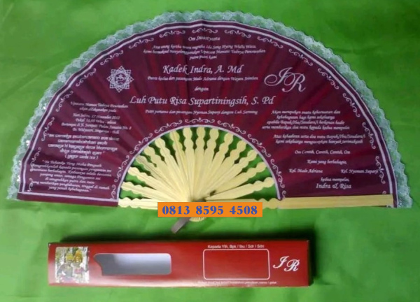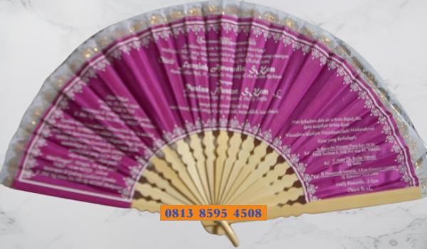 Ini salah satu produk kami undangan model kipas warna kain dan sablon bisa disesuaikan permintaan pemesanan