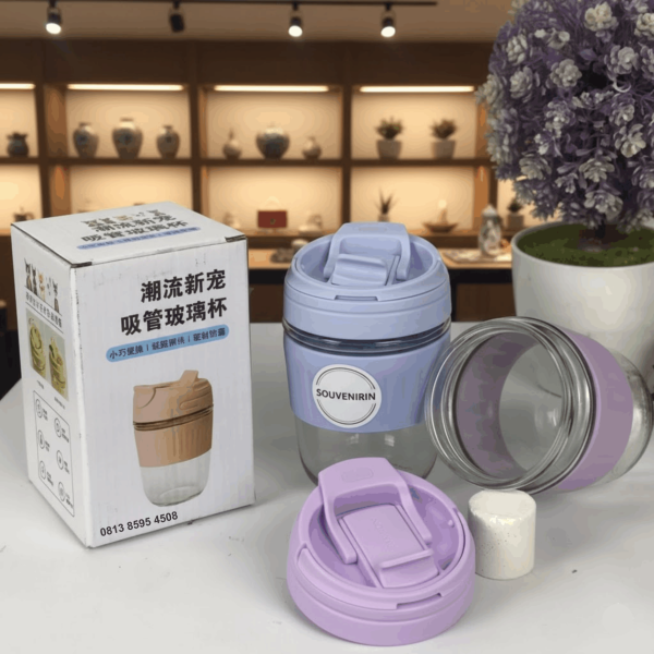 Tumbler kaca 350 ml ini adalah perpaduan antara gaya, kepraktisan, dan kesadaran lingkungan, menjadikannya must-have item untuk segala usia dan aktivitas.