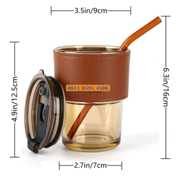 Gelas minum kaca dengan tutup dan jerami yang disertakan dalam warna Abu-abu dan Amber - Desain Aesthetic, Elegan, dan Sederhana.