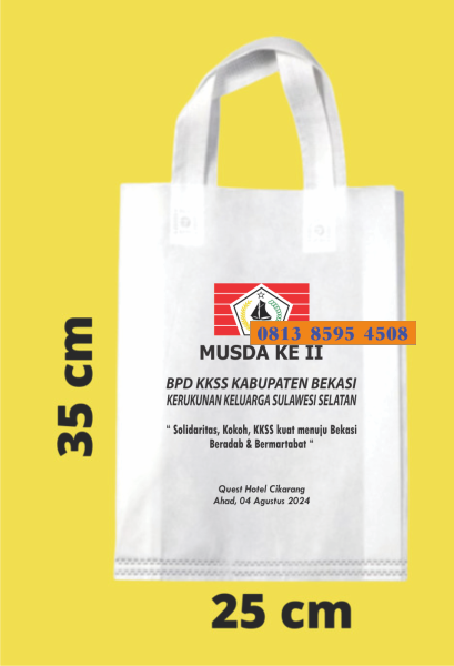 Berikut contoh tas spunbond press yang bisa sablon logo sesuai permintaan pemesan melayani partai kecil atau besar untuk seluruh wilayah indonesia