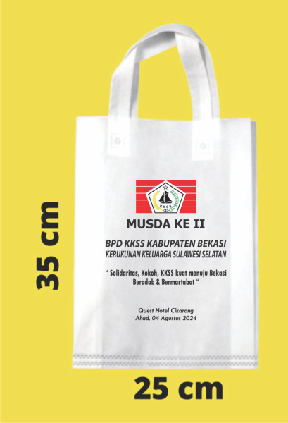 Berikut contoh tas spunbond press yang bisa sablon logo sesuai permintaan pemesan melayani partai kecil atau besar untuk seluruh wilayah indonesia