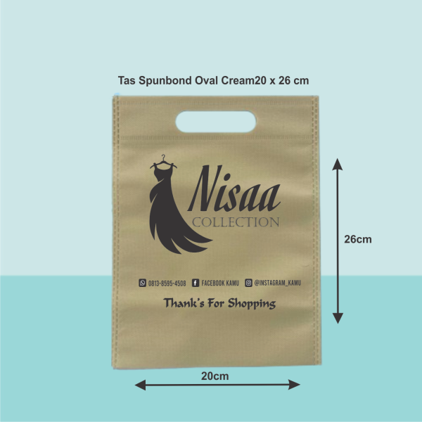Tas Sponbond press warna CREAM handle Pon bahan spunbond gramasi 65 , bisa sablon logo atau nama store anda