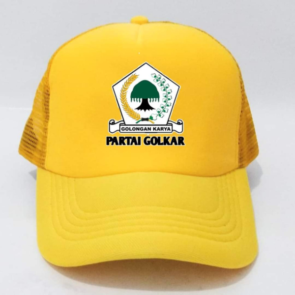 Menerima Pesanan topi segama macam jenis dari baerbagai jenis , ini salah satu contoh dari bahan jaring dengan desain promosi partai