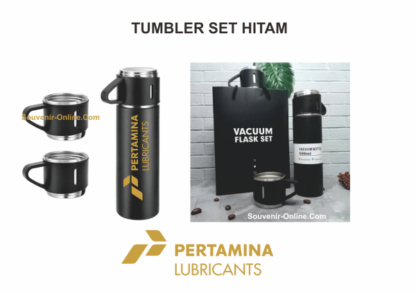 Ini Contoh pesanan tumbler set dengan sablon logo pertamina warna Gold , melayani pengiriman untuk seluruh wilayah indonesia ,