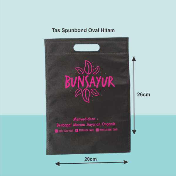 tas spunbond 65g handle Pon Hitam 20 x 26 Gratis Sablon 1 warna