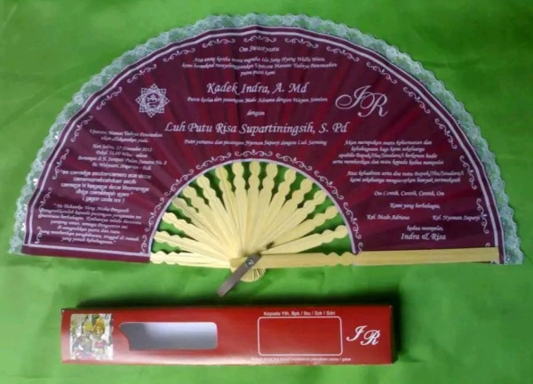 Ini salah satu produk kami undangan model kipas warna kain dan sablon bisa disesuaikan permintaan pemesanan