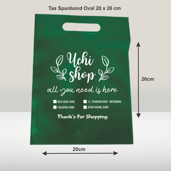 Tas Sponbond press warna HIJAU handle Pon bahan spunbond gramasi 65 , bisa sablon logo atau nama store anda